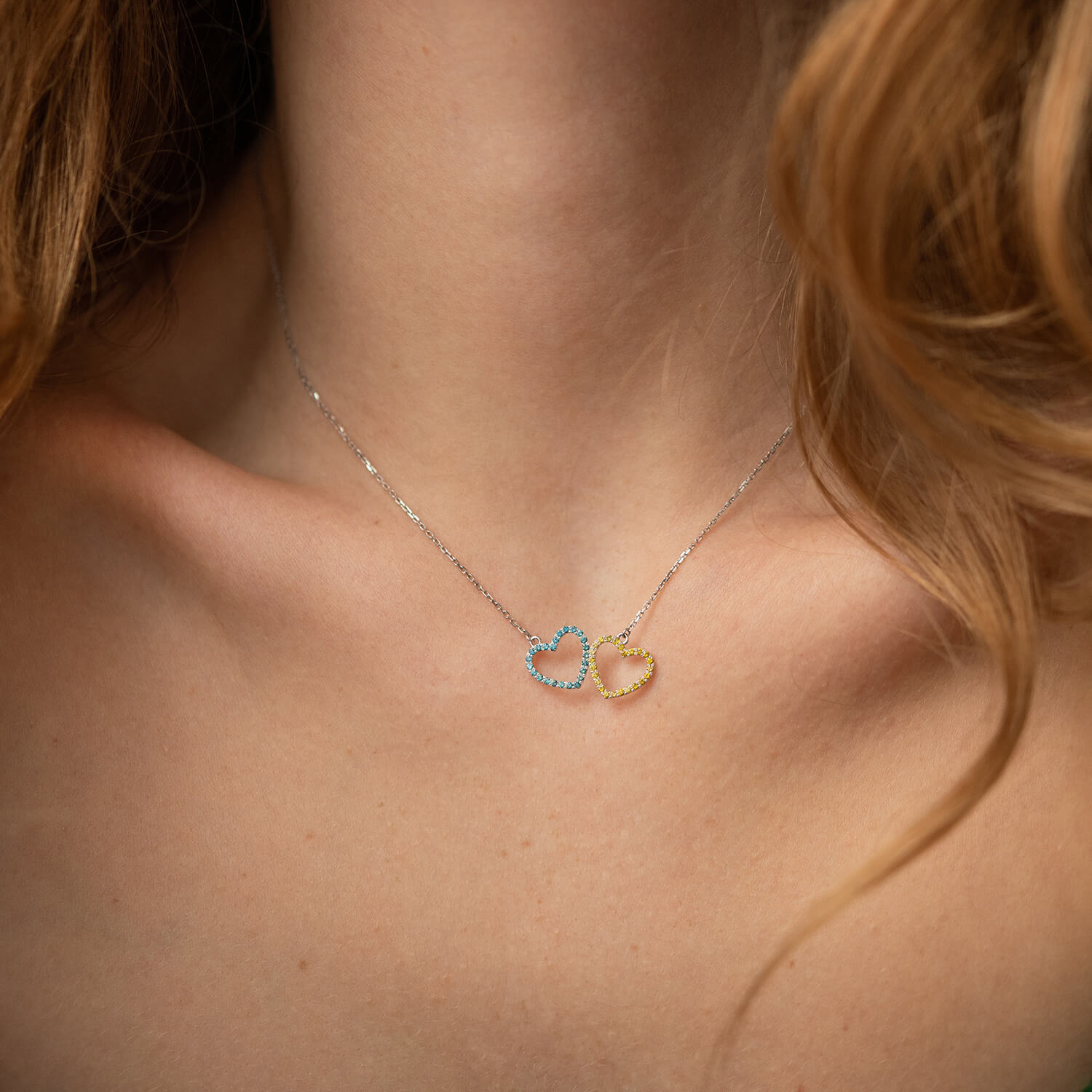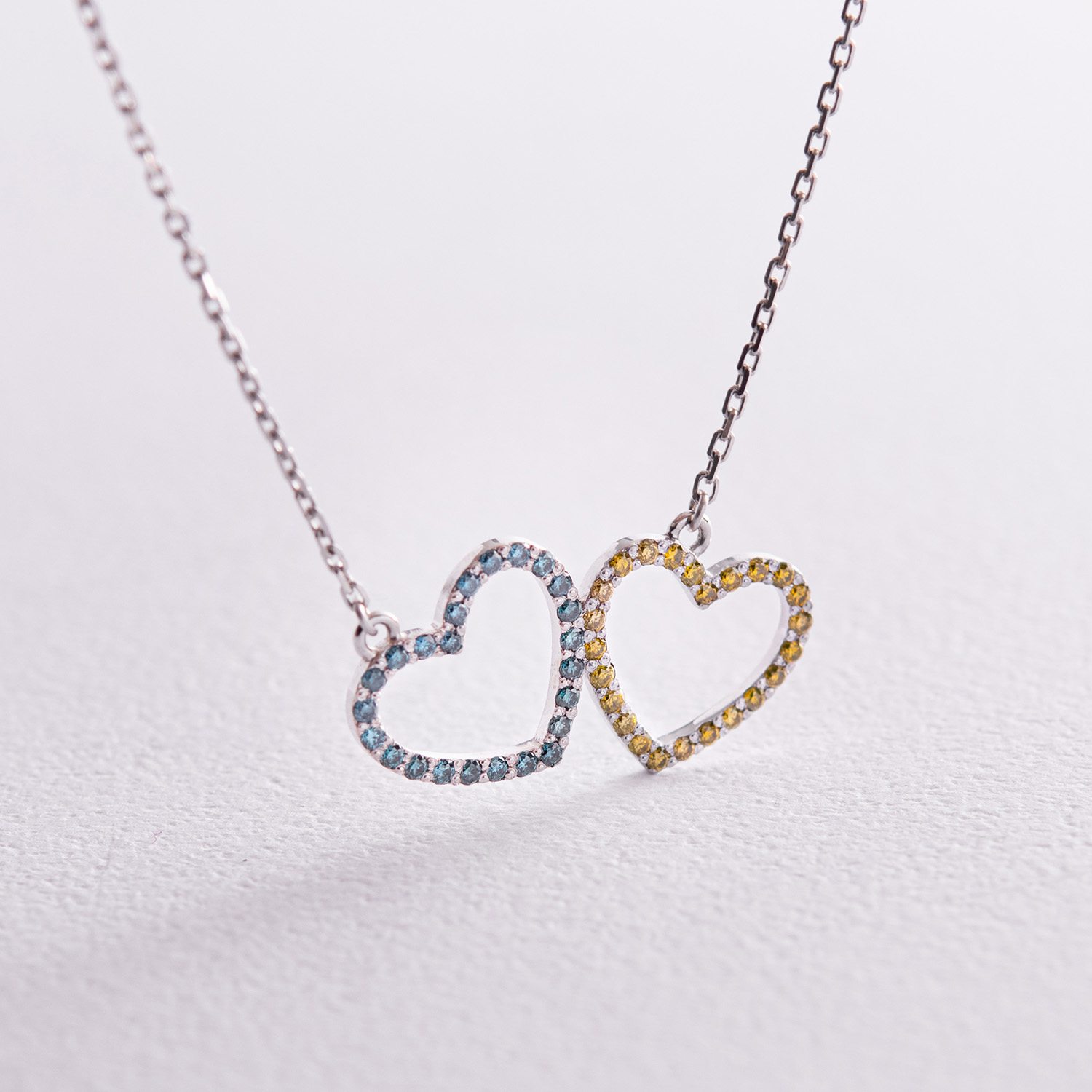 Золоте кольє "Сердечки" з блакитними та жовтими діамантами 727151121