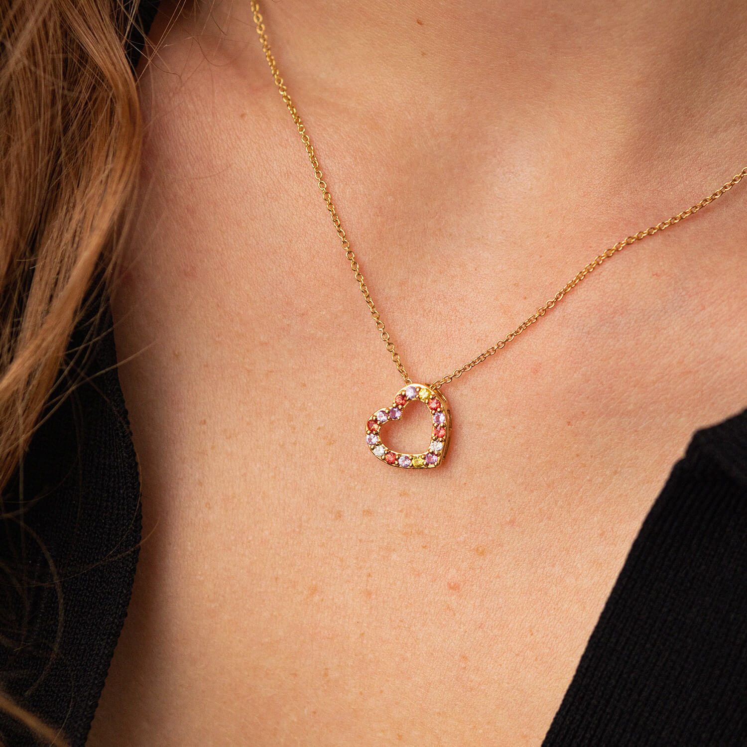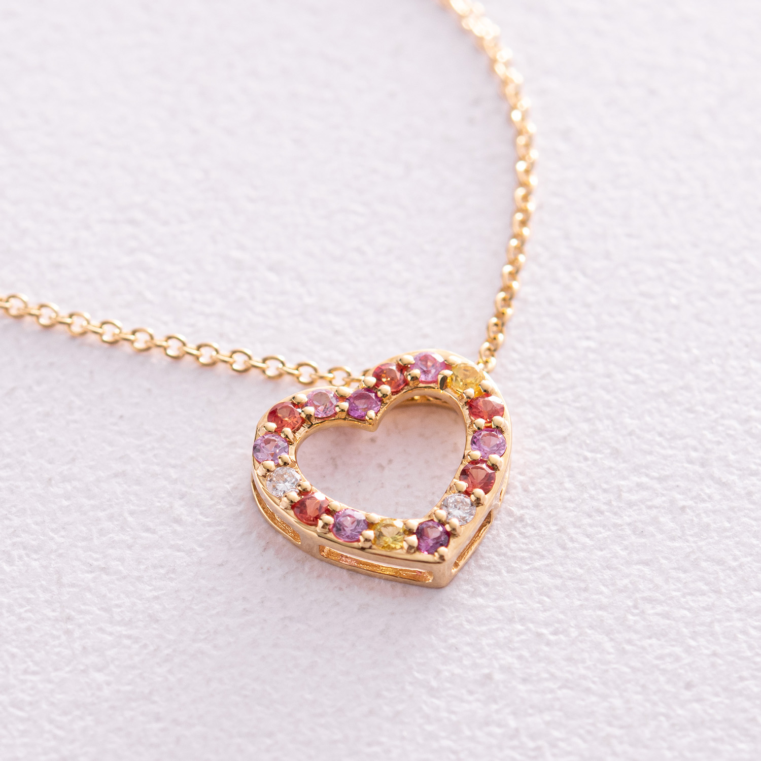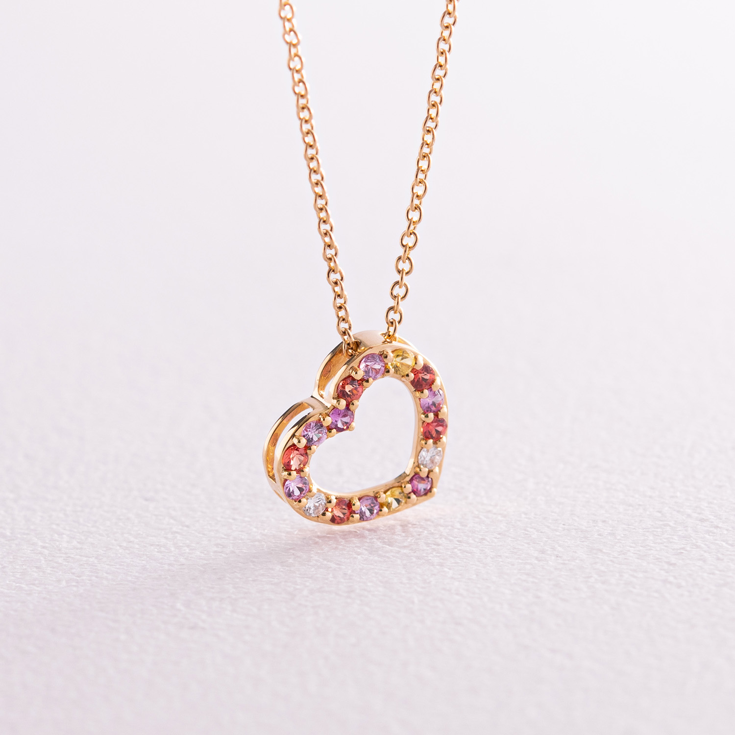 Золоте кольє "Сердечко" з діамантами та сапфірами колб0091ca