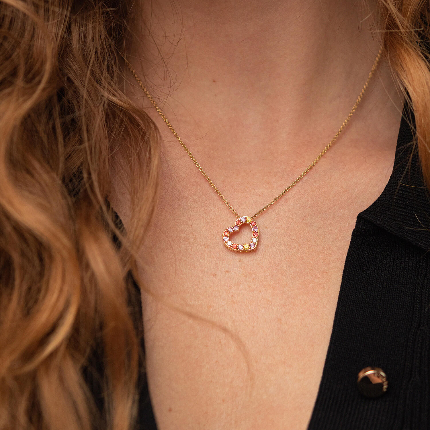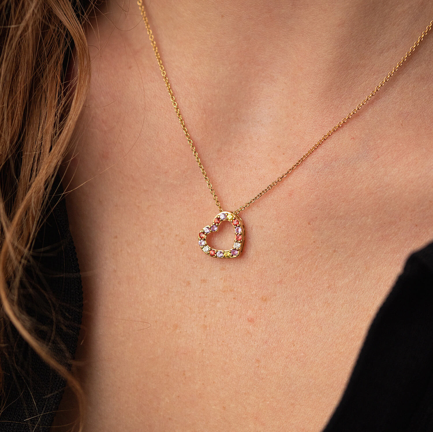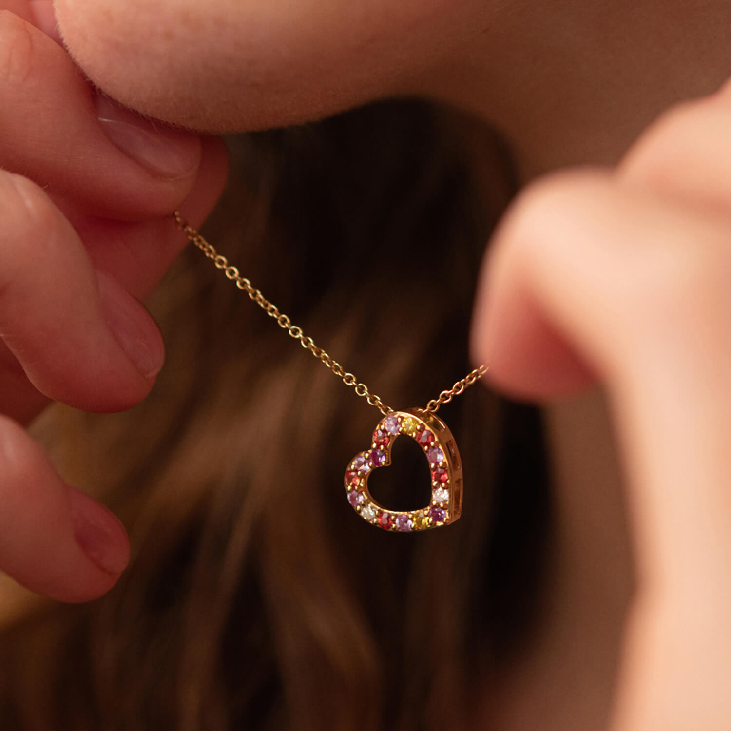 Золоте кольє "Сердечко" з діамантами та сапфірами колб0091ca