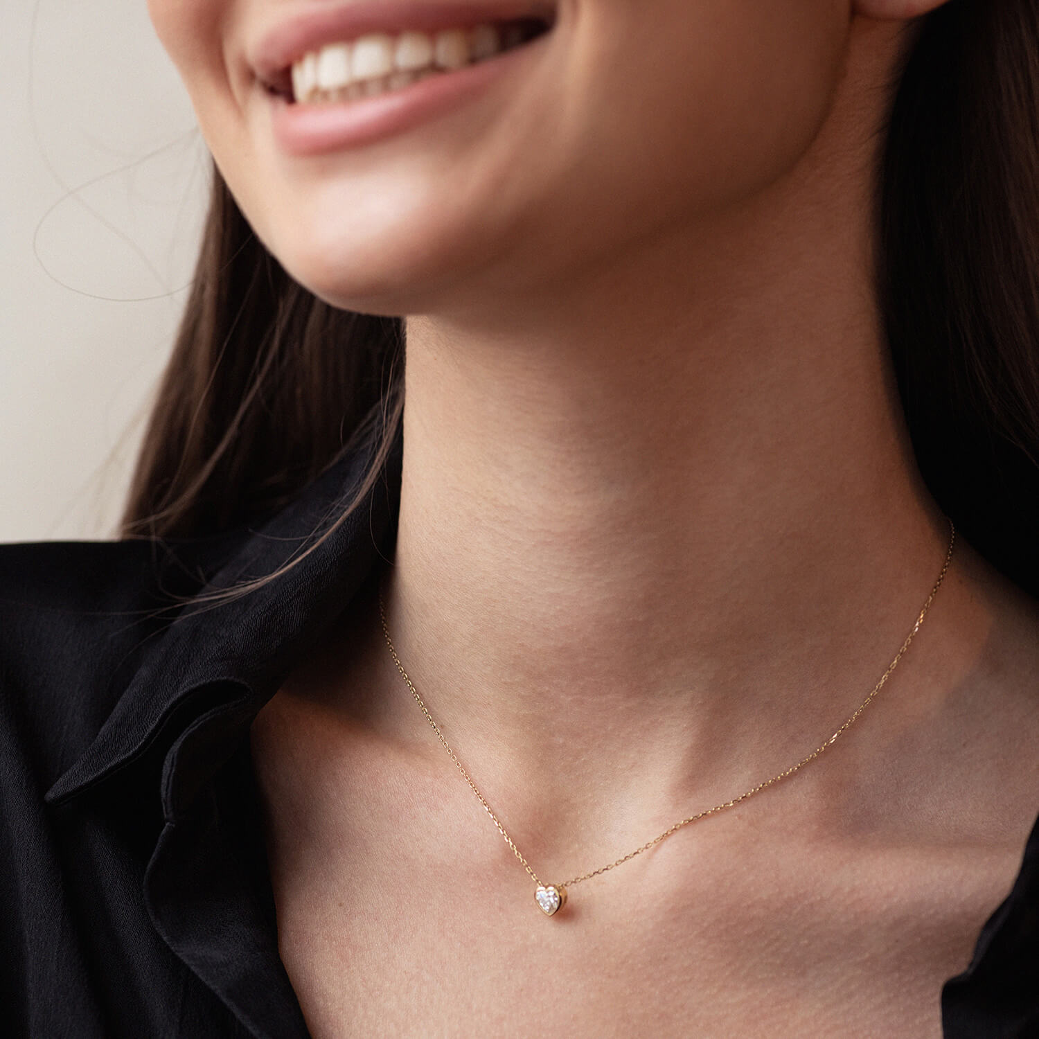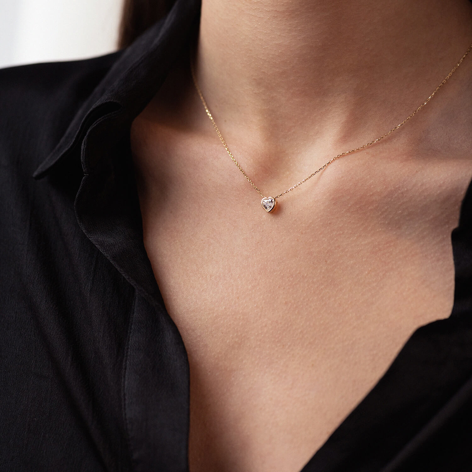 Золоте кольє "Сердечко" з фіанітом кол02345