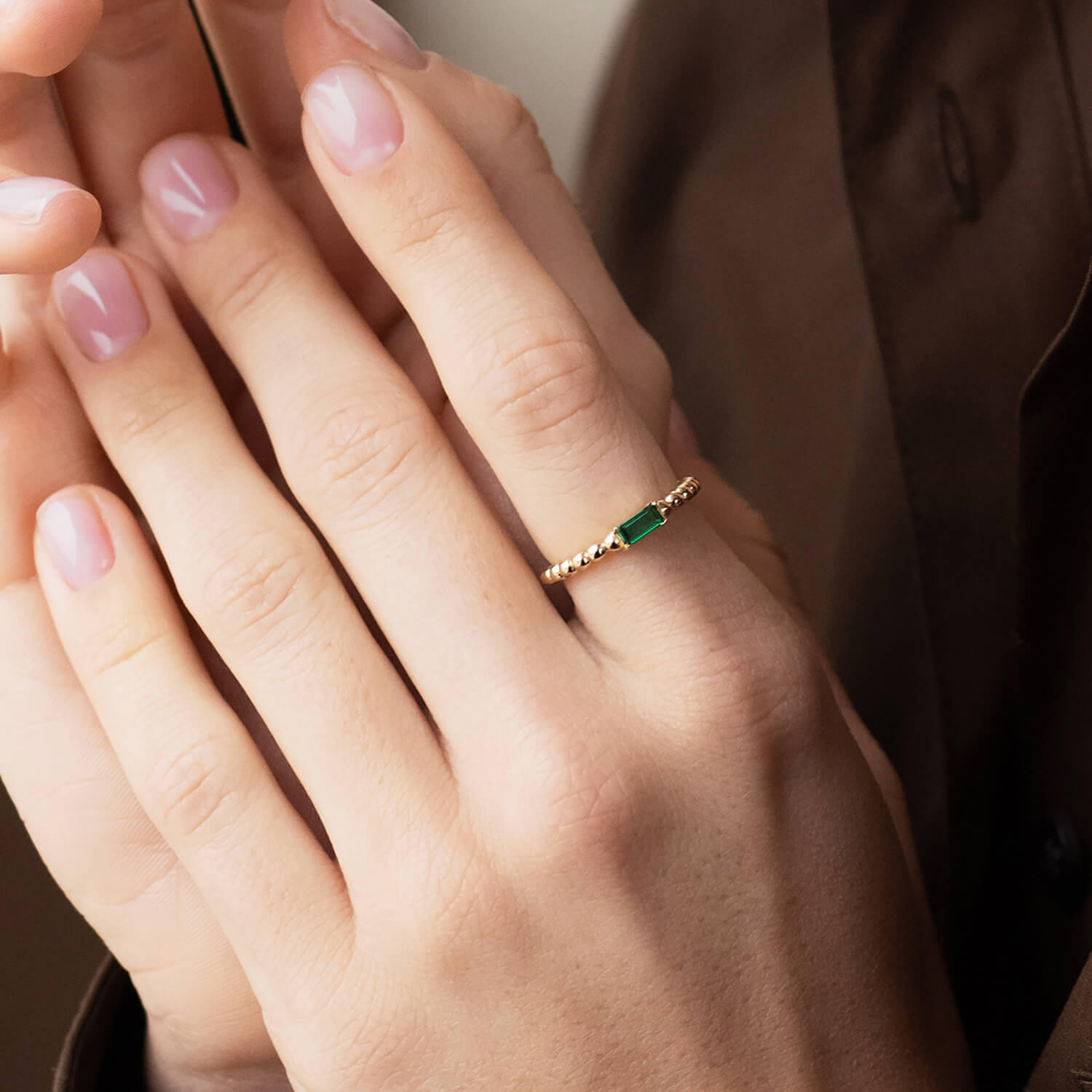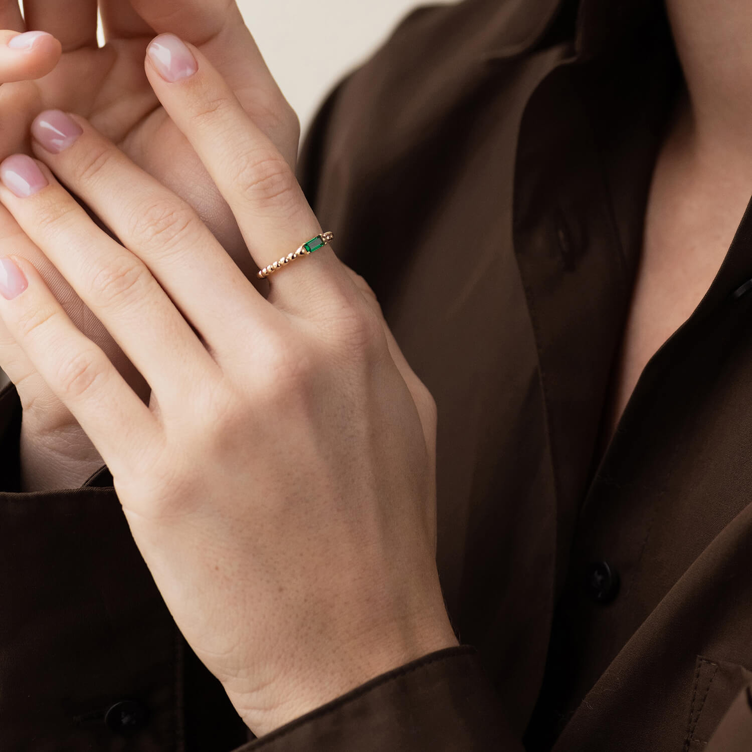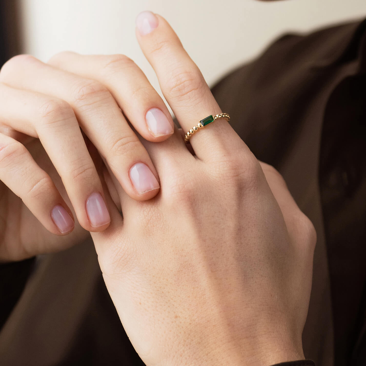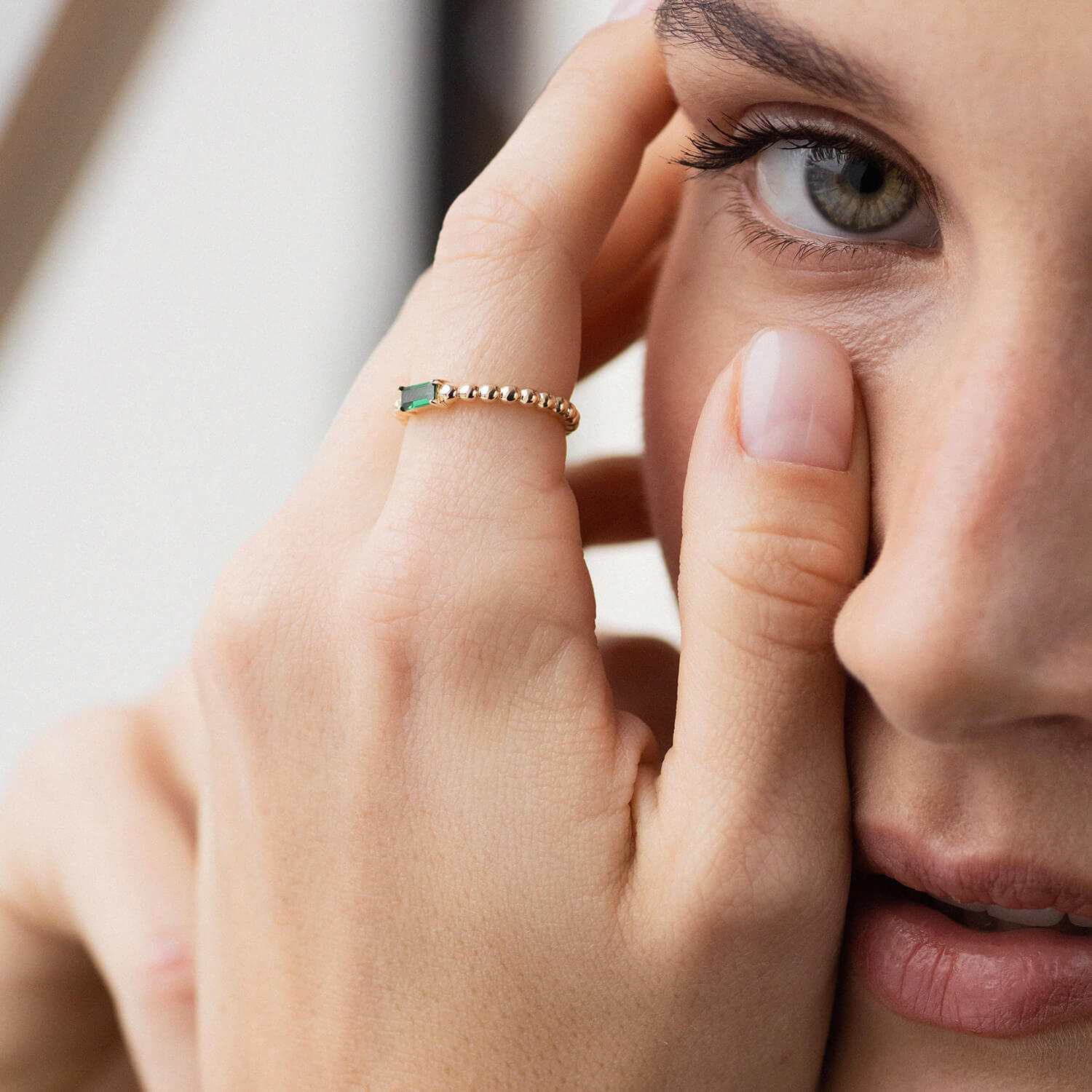 Золота каблучка "Аннабель" з зеленим фіанітом к07183