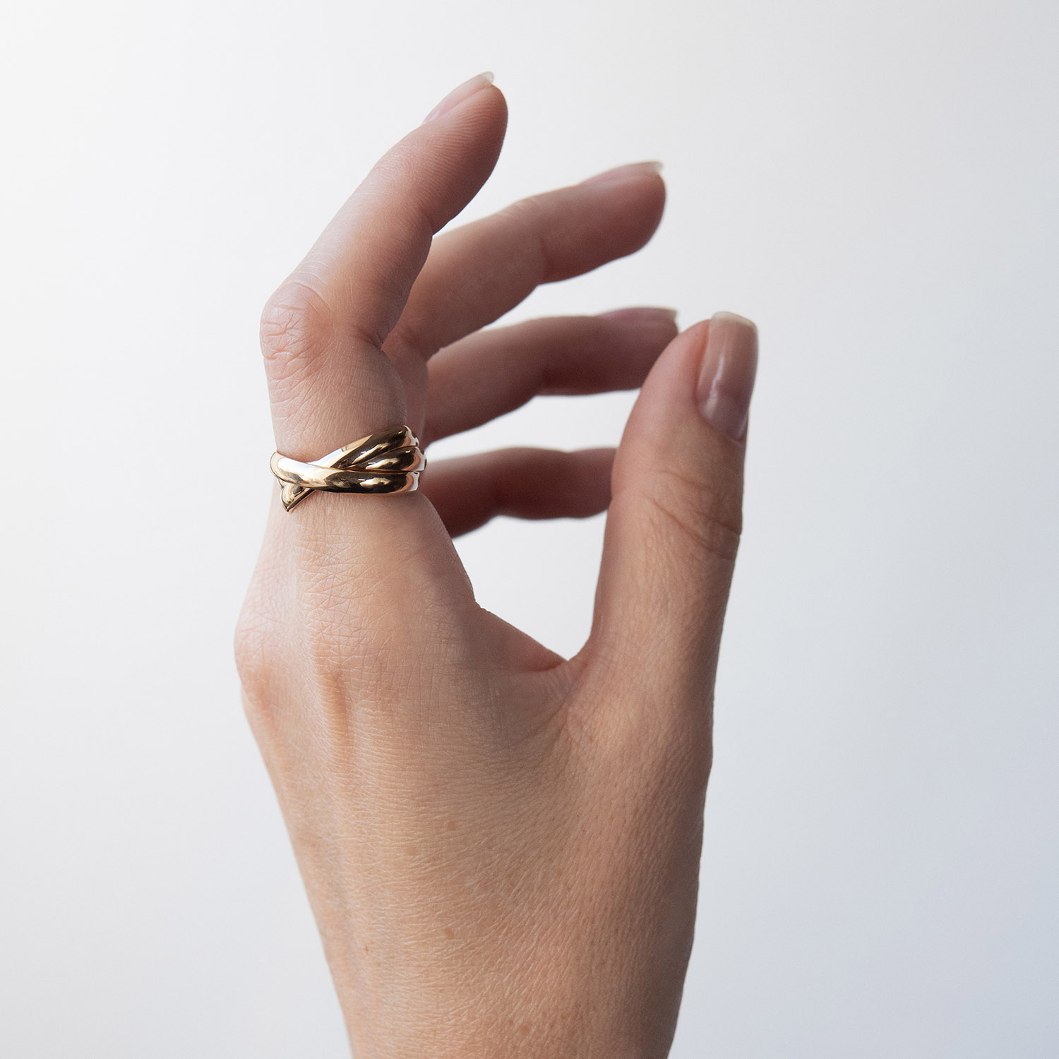 Золота каблучка "Кругообіг" (потрійна) к08019