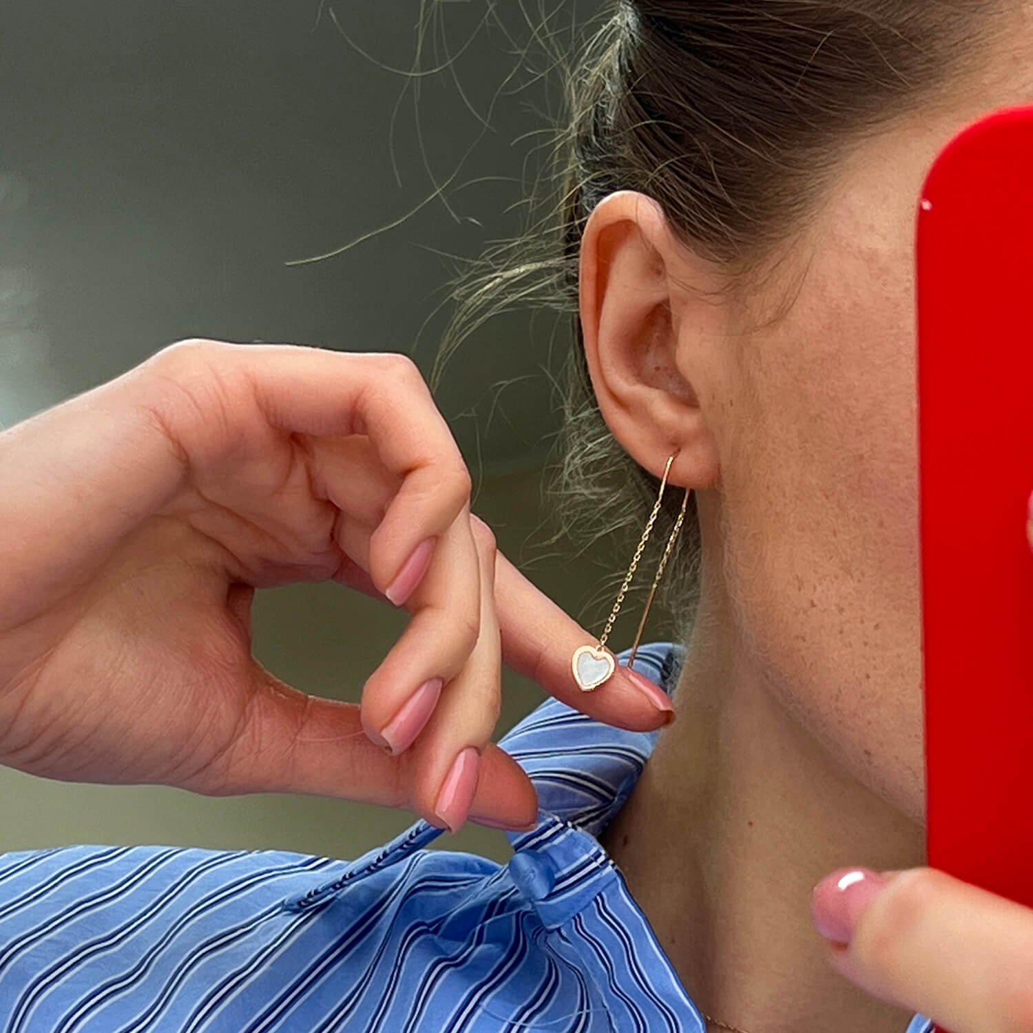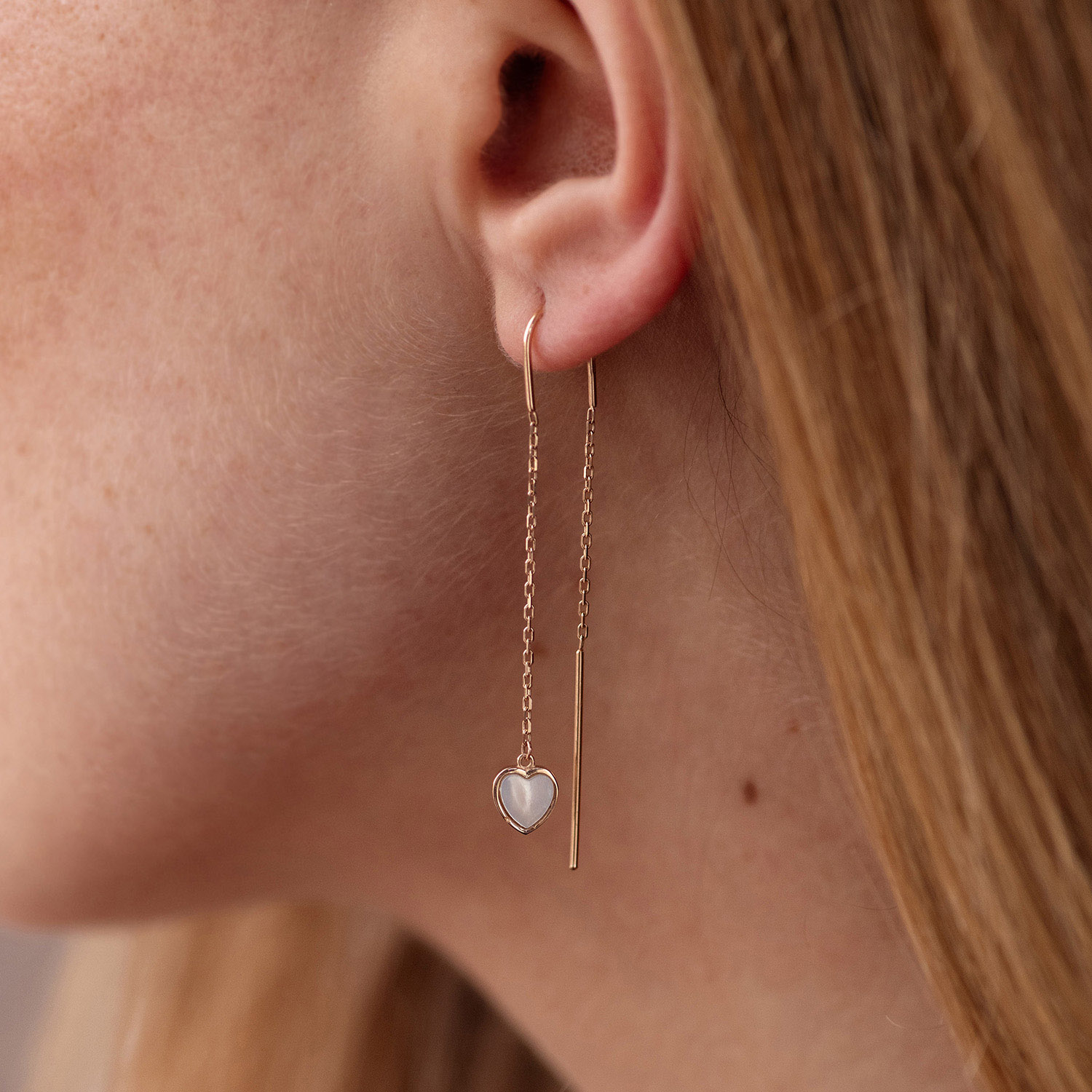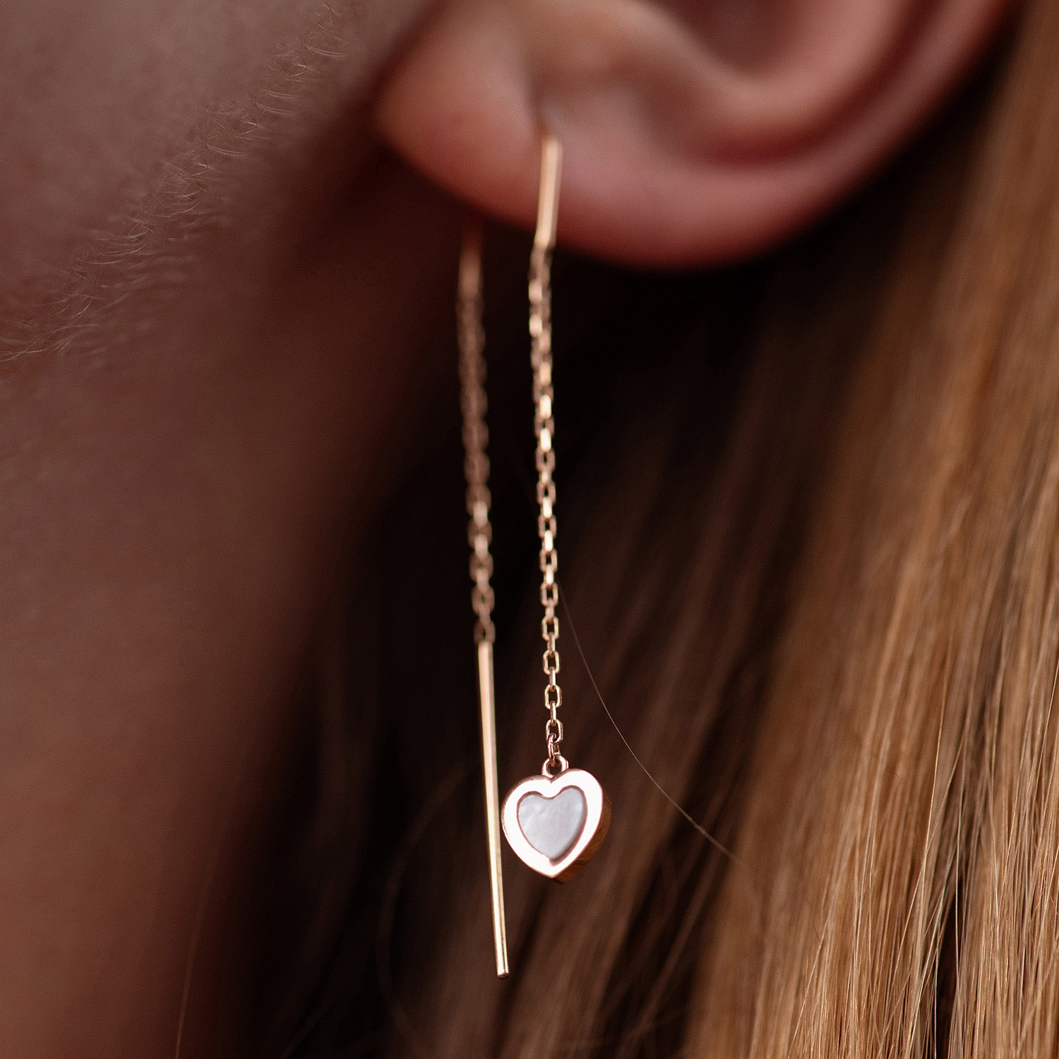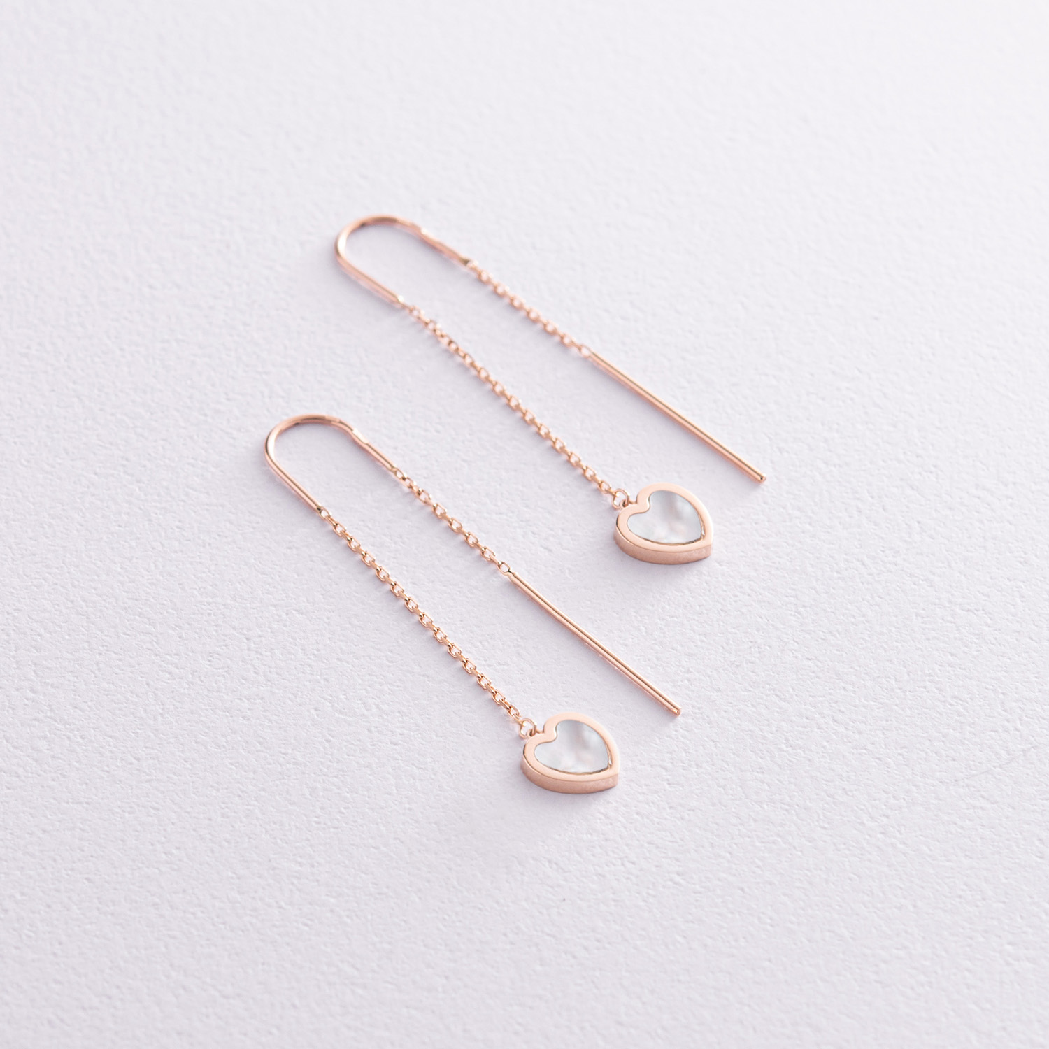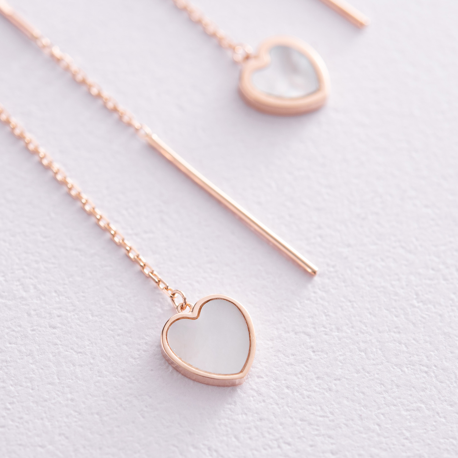 Золоті сережки - протяжки "Сердечки" з перламутром с08150
